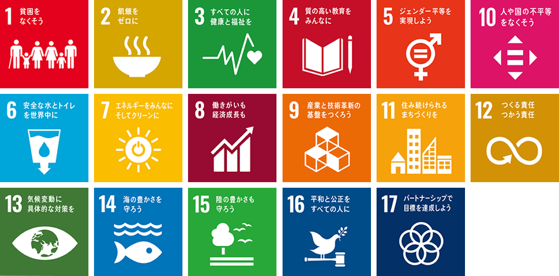 「SDGs」とは Sustainable Development Goals の略称で、17の世界的目標、169の達成基準、232の指標から構成された持続可能な開発のための国際的な開発目標のことです。